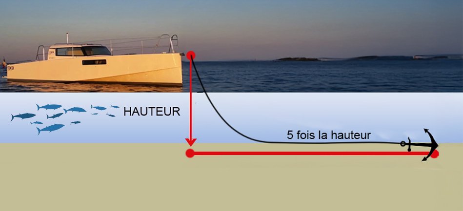 Quando la catena è troppo corta, la trazione diventa verticale. L'ancora può quindi staccarsi dal fondo e la barca inizia ad andare alla deriva.